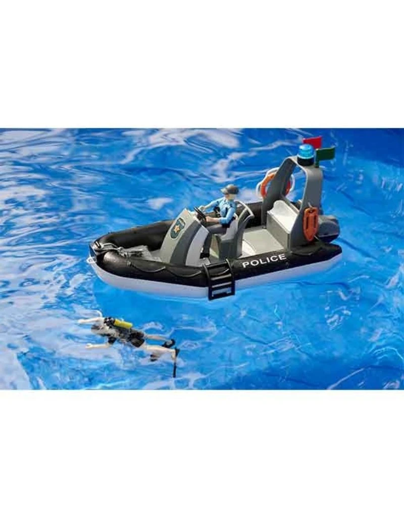 Grote speel combinatie van een politieauto met boot op een trailer.