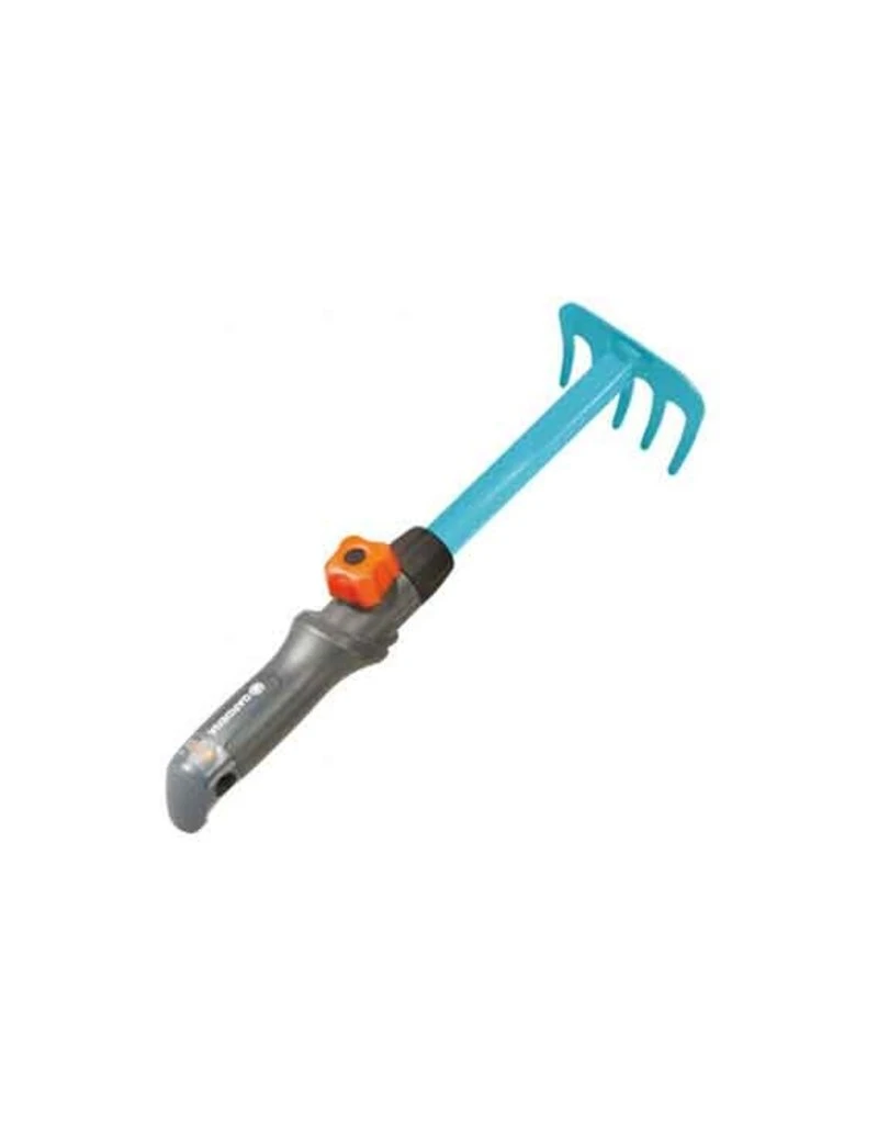 Dit tuinharkje van het bekende merk Gardena is speciaal gemaakt voor de kinderen om gezellig te helpen in de tuin of lekker in de zandbak te spelen. De hark en de steel zijn gemaakt van metaal.