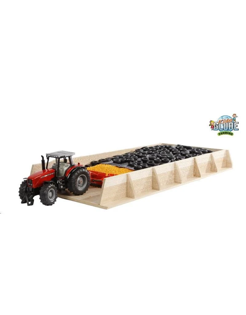 Deze nieuwe sleufsilo is hoger dan dubbele sleufsilo van Kids Globe. Tractoren met schaal 1:32 en 1:50 kunnen met de silo prima uit de voeten.