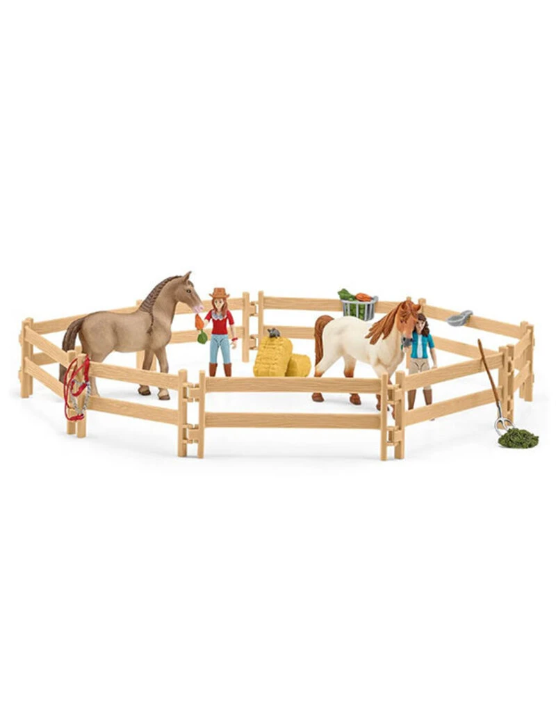 Functies: – Dak met paddocks is een open manege! -Verstelbare hekken! – Beweegbaar dakraam! – Drinkbakken! – Zadel en teugelhouder