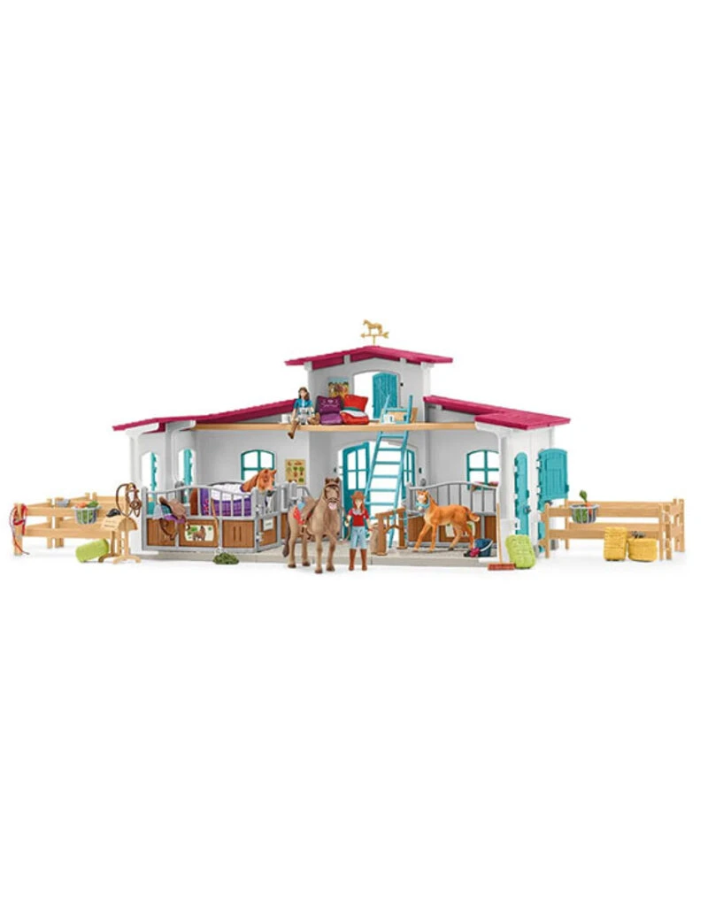 De nieuwe stal is klaar. Met zijn groene deuren en roze kleurige ramen ziet hij er gewoon betoverend uit. Lissi en de andere meisje zijn blij. De paarden staan in grote boxen, stro balen en voeren liggen klaar. Maar eerst willen ze allemaal gaan rijden.