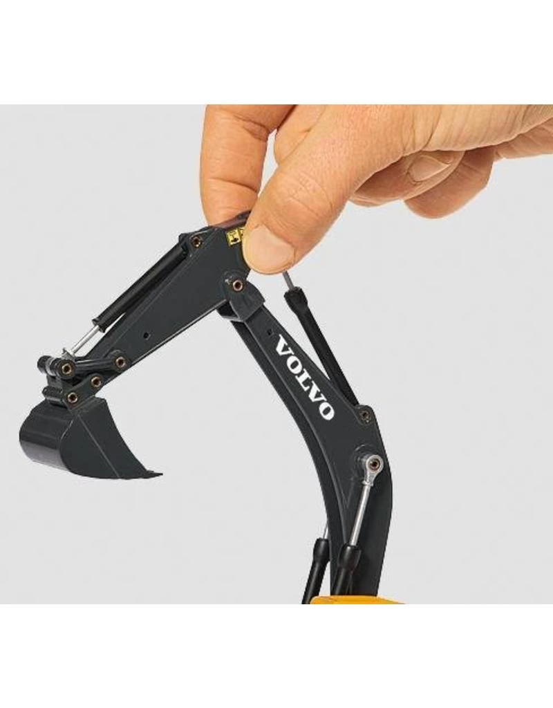 Deze hydraulische graafmachine van het merk Volvo is een standaardmachine voorkleine en middelgrote bouwplaatsen. Het voor het grootste gedeelte van metaalgemaakte model, overtuigt door een hoge detailnauwkeurigheid. Dekettingen van rubber zijn beweegbaar. Het bovenwerk met cabine engraafmachinearm kan 360 graden worden rondgedraaid. Er kan zeer realistisch met hetmodel worden gewerkt, omdat graafmachinearm en laadschop door middel vandraaipunten beweegbaar werden vormgegeven.