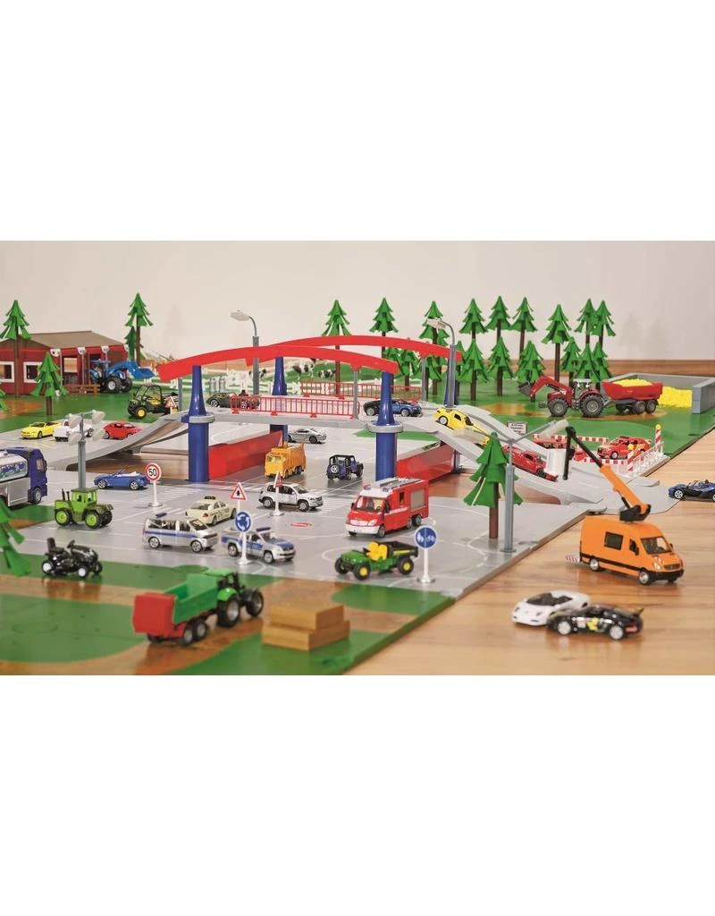 De ophaalbrug vormt een centraal element in het SIKUWORLD-landschap in de kinderkamer. Vaar over een rivier of rijd op de weg. Bouw de brug in de SIKUWORLD in of gebruik deze als afzonderlijk speelelement. De nieuwe oprij-elementen maken dit flexibele gebruik van de brug mogelijk. De opritten kunnen met nagenoeg alle SIKU-modellen worden bereden. Wanneer de doorvaarhoogte onder de brug te laag is kan de rijbaan omhoog worden geklapt en kan de veerboot weer doorvaren. Daarna kunnen vrachtwagens en tractoren weer verderrijden.