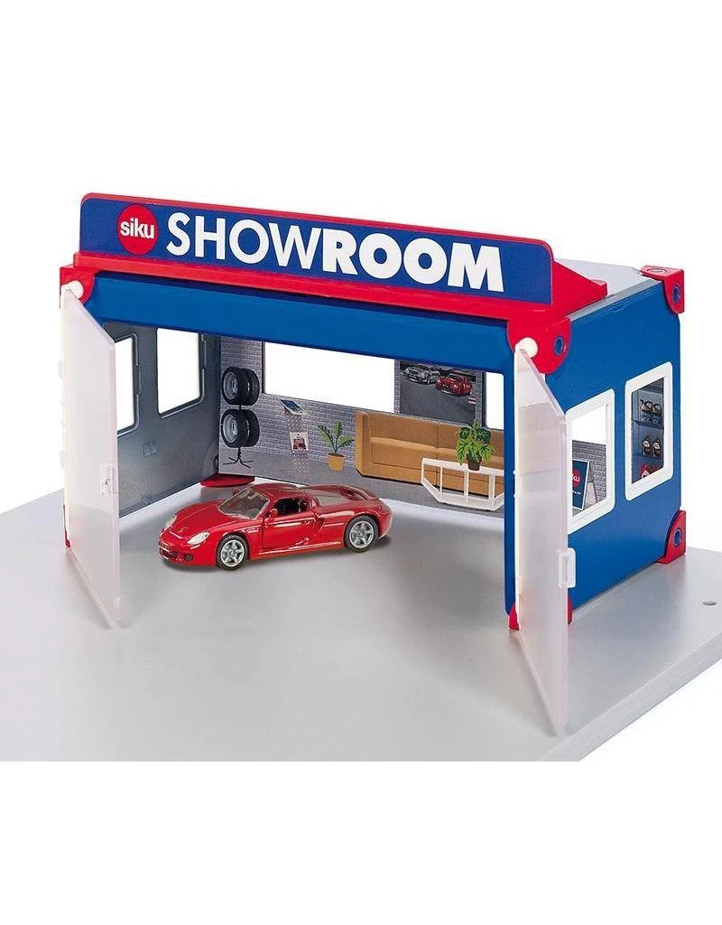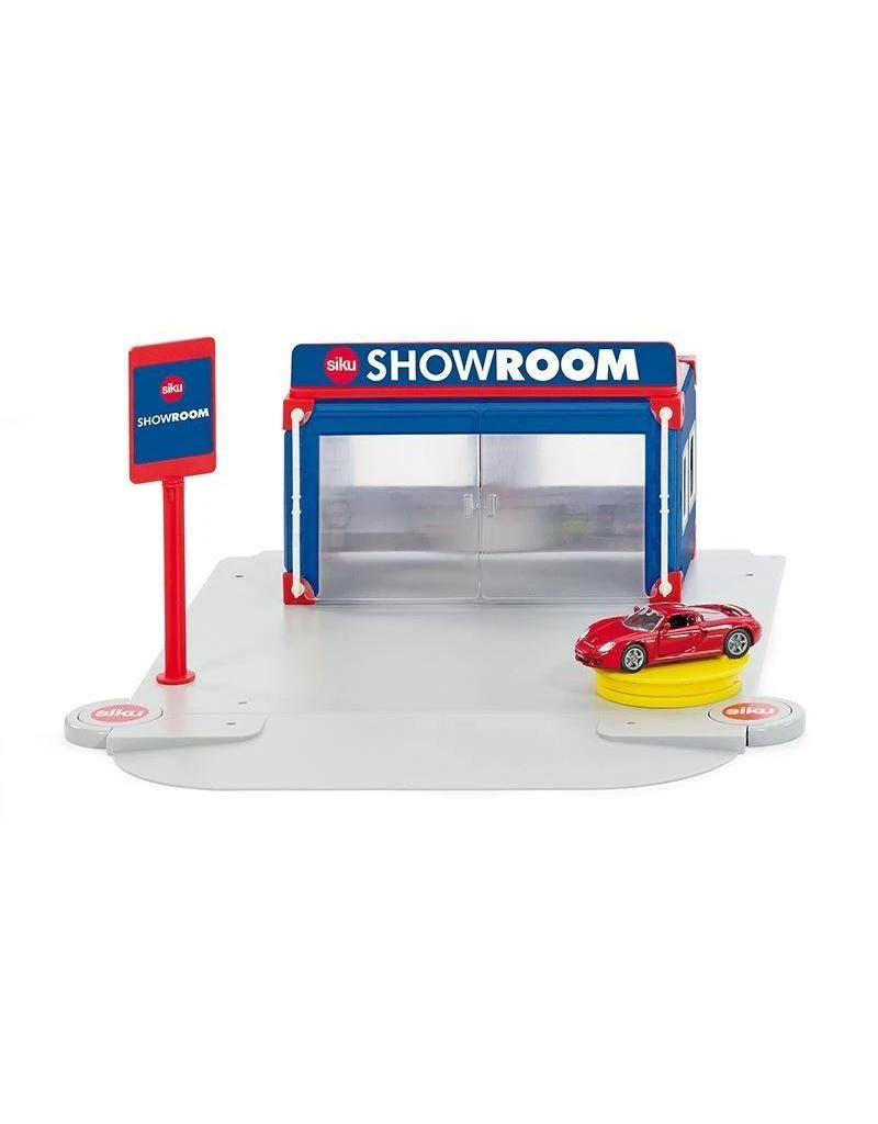 De met een kleurrijk vormgegeven achterwand uitgeruste showroom biedt plaats aan maximaal drie voertuigen. Of het nu gaat om nieuwe of gebruikte auto’s, elke dag kan er een andere spelvorm worden opgebouwd. Via de royale deuren met in hoogglans gepolijste ruiten kan men comfortabel in- en uitrijden. De bijgeleverde Porsche Carrera GT kan als speciale blikvanger op het draaibare presentatieplatform worden tentoongesteld. Door de standaard bodemplaat gaat de garage naadloos over in de SIKUWORLD. De nieuwe oprit maakt een flexibele inbouw in de SIKUWORLD mogelijk, maar kan ook daarbuiten worden gebruikt. Deze kan aan een willekeurige SIKUWORLD-plaat worden gelegd en biedt zo de mogelijkheid om op de gewenste plaats de WORLD op te rijden.