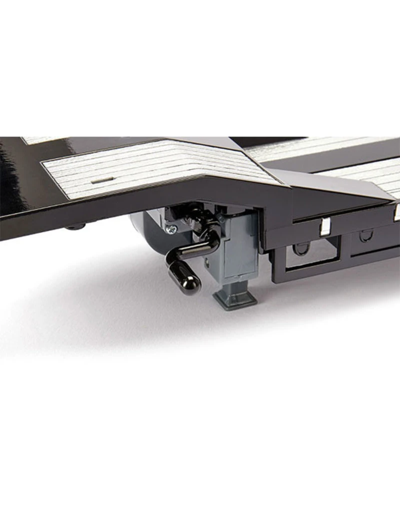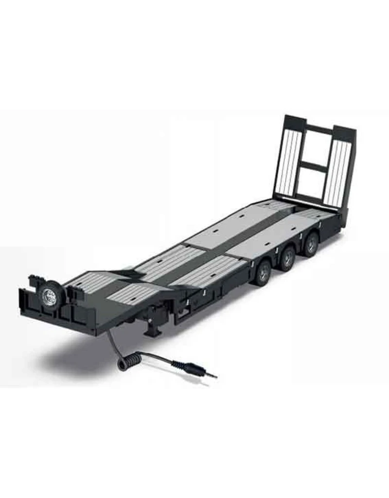 De dieplader koppel je aan de Siku Volvo vrachtwagen. Met de afstandbediening kun je de verlichting en achterklep bedienen.
