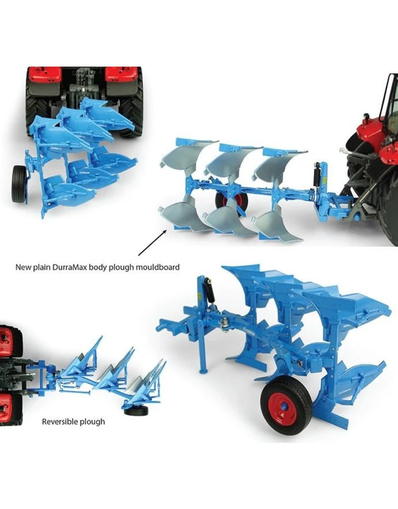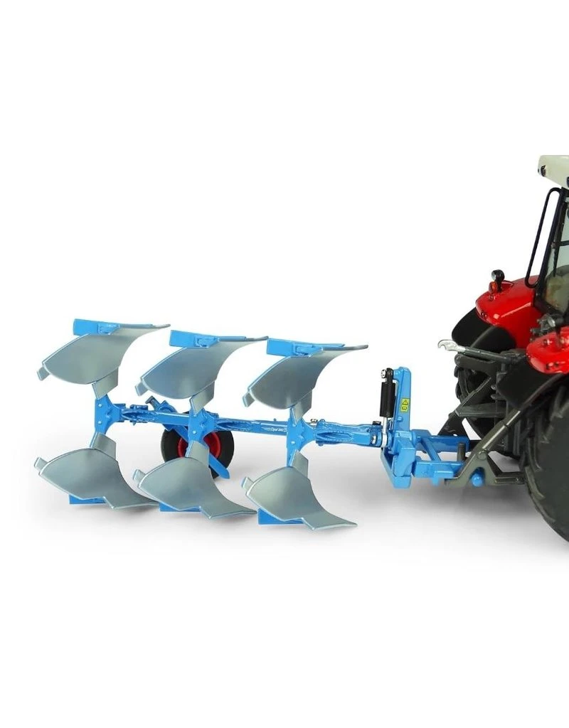 Gedetailleerd schaalmodel van deze blauwe ploeg. In dit geval een 3 schaal wentelploeg.