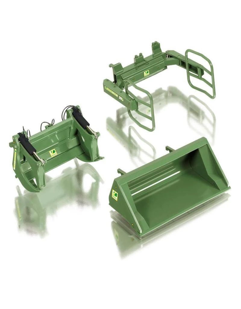 Wiking 77383 – Frontladerset A kleur groen: Bak, Balen- & Bomenklem